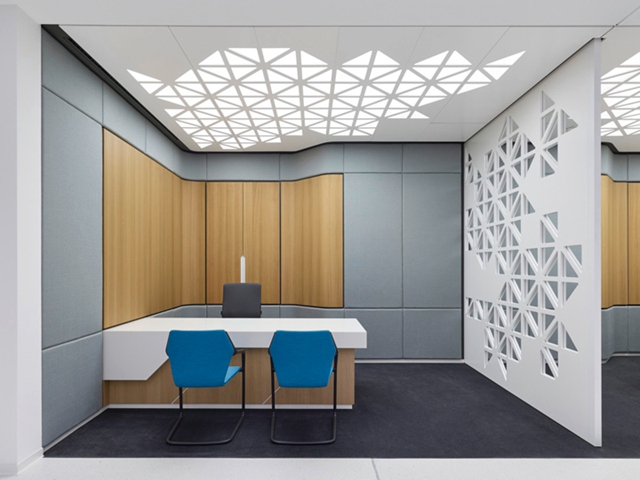 2.壓花玻璃:壓花玻璃的特點是透光而不透明,廣州裝修設(shè)計公司多使用于洗手間等注重私秘性的區(qū)域,辦公室裝修中常用到的區(qū)域是洗手間、辦公分隔還有小空間的分隔。